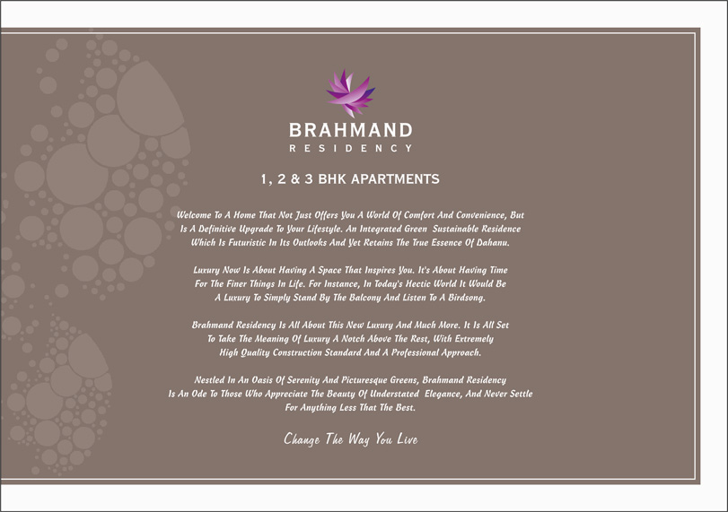 Welcome to a home that not just offers you a world of comfort and convenience, But is a definitive upgrade to your lifestyle. An integrated green sustainable residence which is futuristic in its outlooks and retains the true essence of Dahanu.